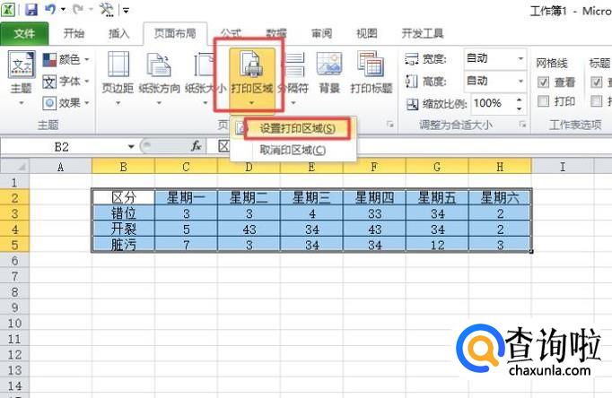 然后我们点击打印区域的下拉箭头,弹出的界面,我们点击设置为打印区域;