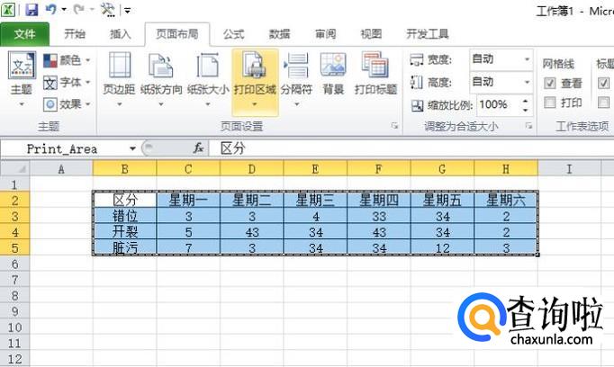 这样就设置好打印区域了,设置好后的打印区域在周围会出现一个方框一样的东西,这就说明我们设置好了。
