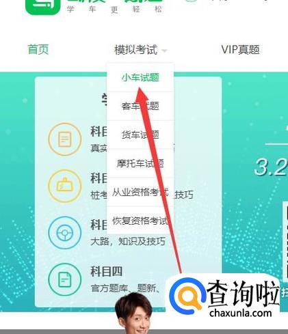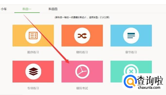 进入之后,在模拟考试位置选择“小车试题”,点击并进入,如图所示。