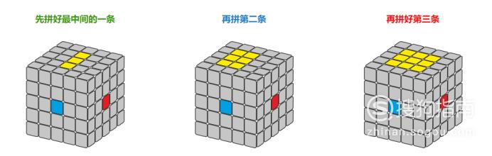 入门的时候,建议先拼好黄色和白色的两面中心块,再完成蓝、红、绿、橙四面中心块。本教程是先完成黄色中心块,保持黄色中心块不破坏,再完成白色中心块。