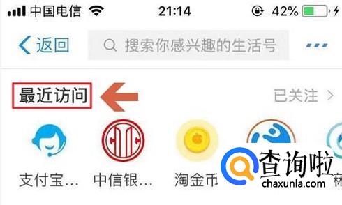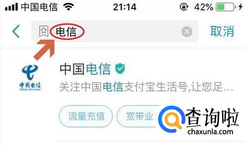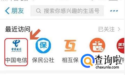 如果想要添加其他新的生活号,首先在上面的搜索框里输入找到,比如说电信的生活号;