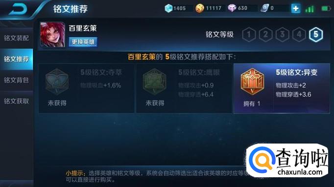 蓝色铭文我们带五级的夺萃,可以吸收对方的血量,保证了百里玄策的血量。