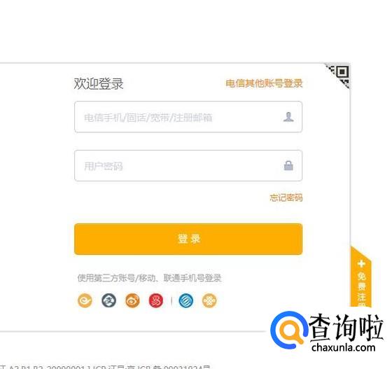 打开电信官网,登录自己的账号,如图所示。