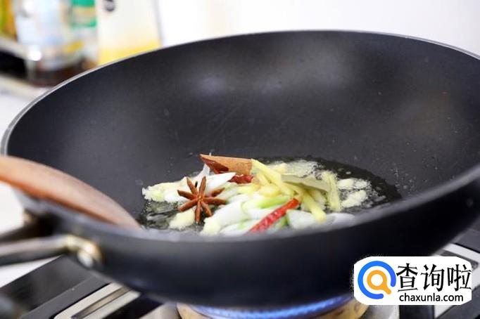 接下来我们需要把红烧昂刺鱼的配料切好,然后锅内留少许油把葱姜蒜爆香。