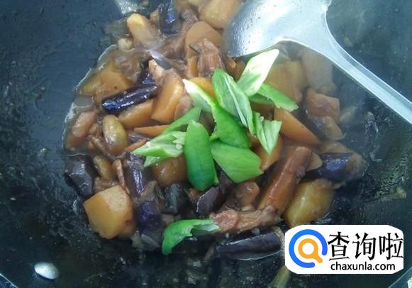 再次倒入少量开水盖上锅盖炖煮至茄段软烂后放入辣椒段翻炒2分钟,然后装盘就可以了。