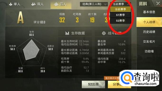 因为手游绝地求生不止一个赛季,如果我们还想看以往赛季的排行榜,我们还可以点击进入,便可以观看了。