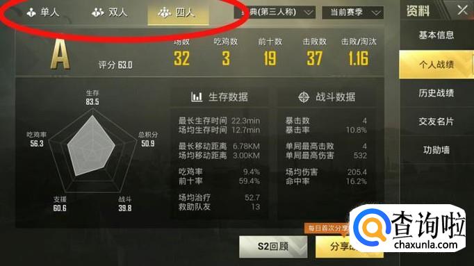 除此之外,我们还可以分别观看单人,双人,四人的排行榜,点击进入便可观看。