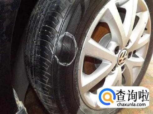 轮胎缺气行驶,胎侧损害。