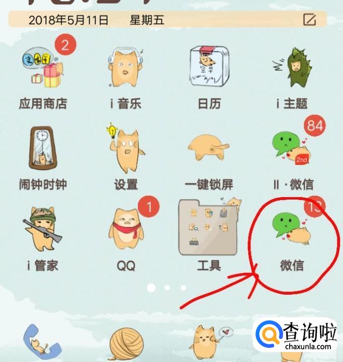 首先打开手机首页,找到微信,点击并打开