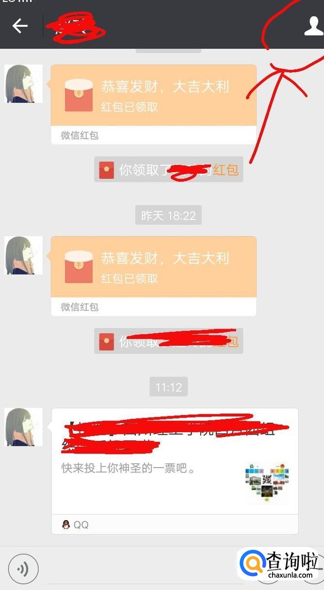 打开聊天页面后,点击打开“聊天信息”也就是所圈的地方,进入后,找到“设置聊天背景”,点击并打开