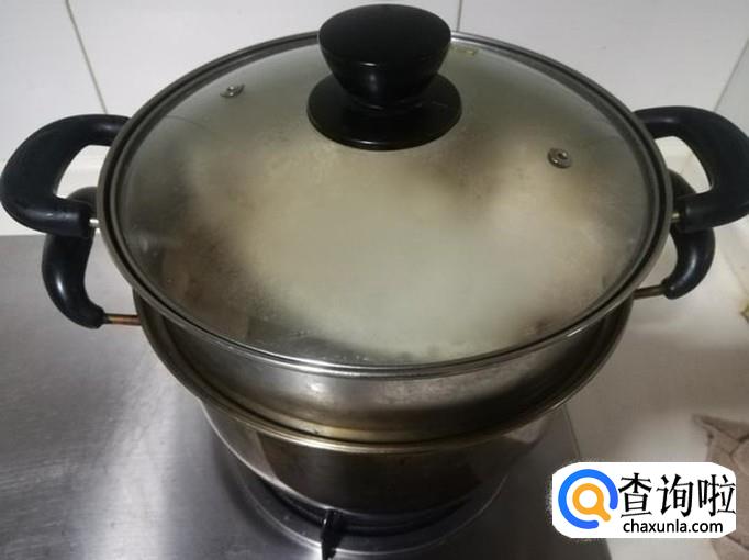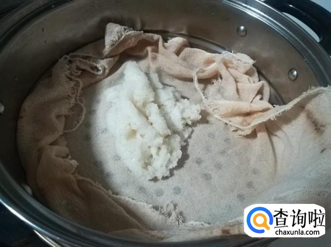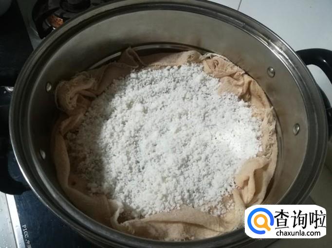 盖上锅盖,大火蒸上20分种,就蒸熟成粘糕坯了。