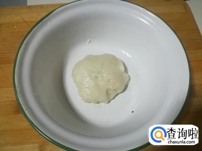 再把粘糕坯取出,放入一个小盆里,用手揉匀揉透。