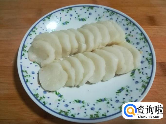 然后用刀切成0.5公分厚的薄片放盘里。这样糯米粘糕片就做好了。吃的时候,蘸上白糖,就可以大饱口福了。