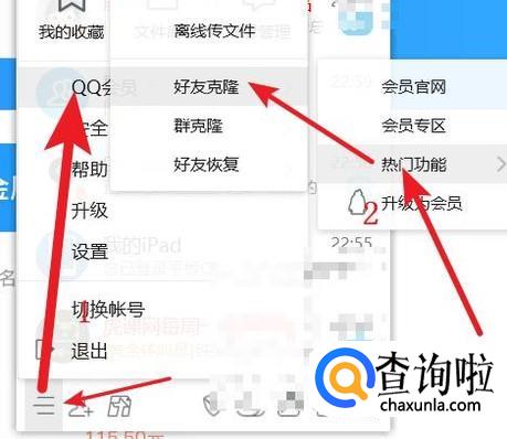 打开电脑端的QQ,选择功能-会员功能-热门功能-好友克隆。