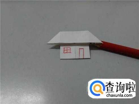 用笔在下面画一个田字,表示窗户,画一个长方形,表示门,小房子就折好了。