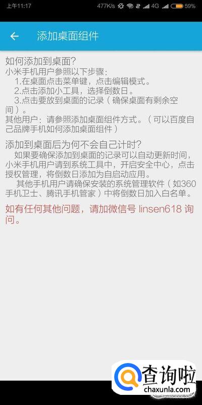 点击软件首页的倒数日事件记录,即可进入到记录的详细页面,软件会提示怎么把倒数日的提醒添加到手机桌面。
