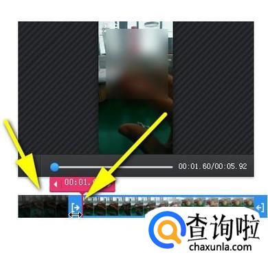 若想把视频后面一段画布删除,鼠标点住右侧的按钮,向左边拉,所拉之处的右边这一段画而即裁剪掉。