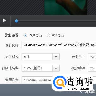 转到导出设置界面,点选:视频;再设置保存路径。再点:开始导出