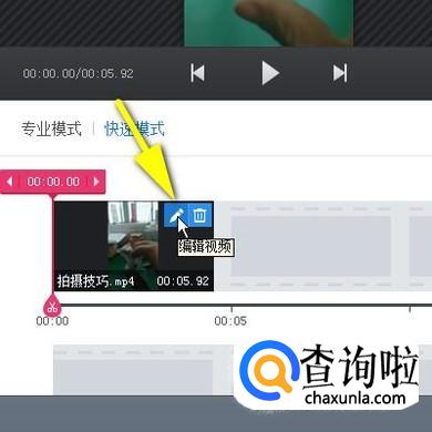 如图所示,点击此按钮,进入到编辑视频的界面。