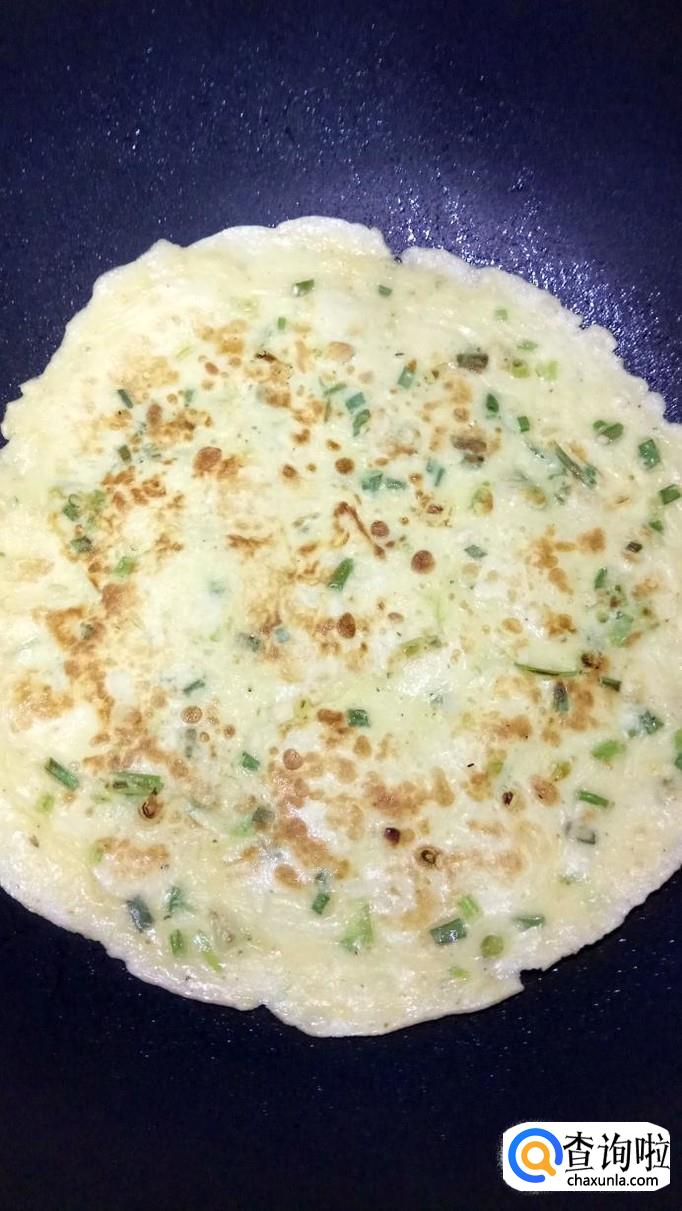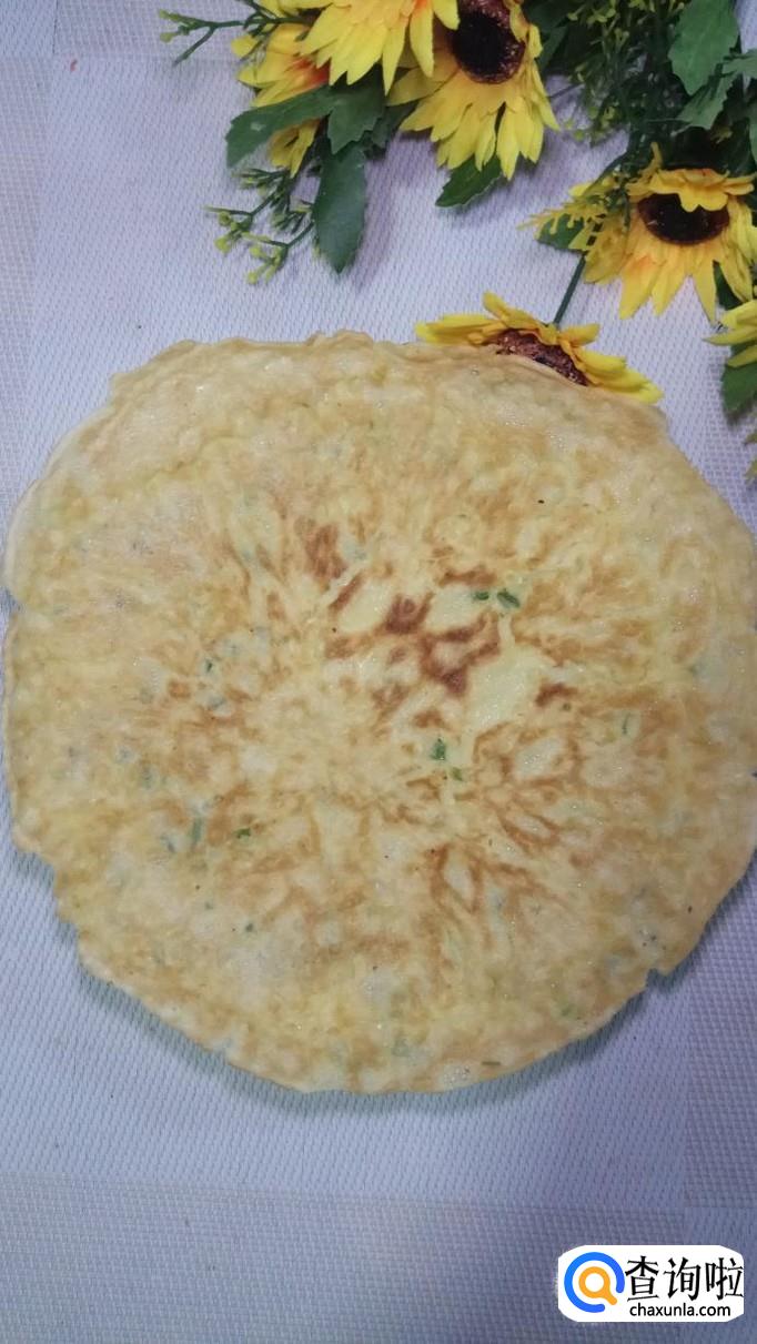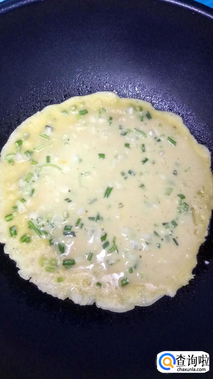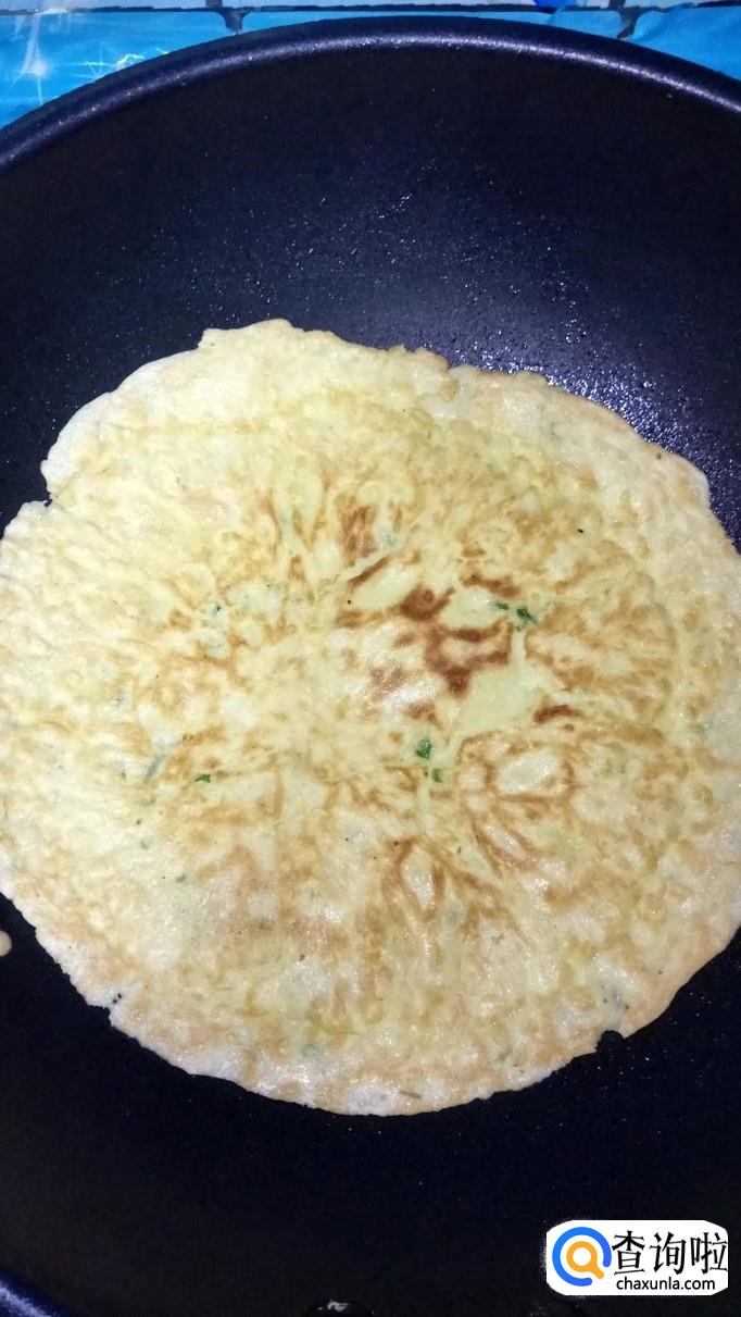 平底锅刷油,油热后,将面糊倒入锅中,摊成圆形,注意,油不用太多,尽量摊得薄一些,这样口感更好。