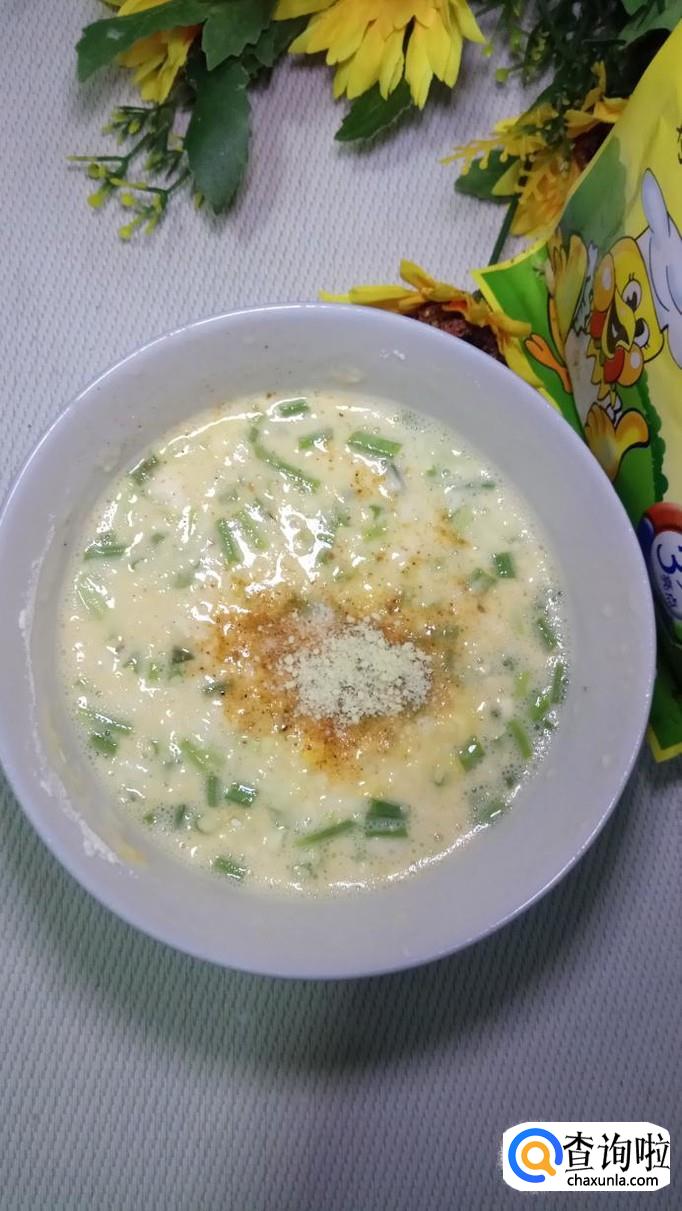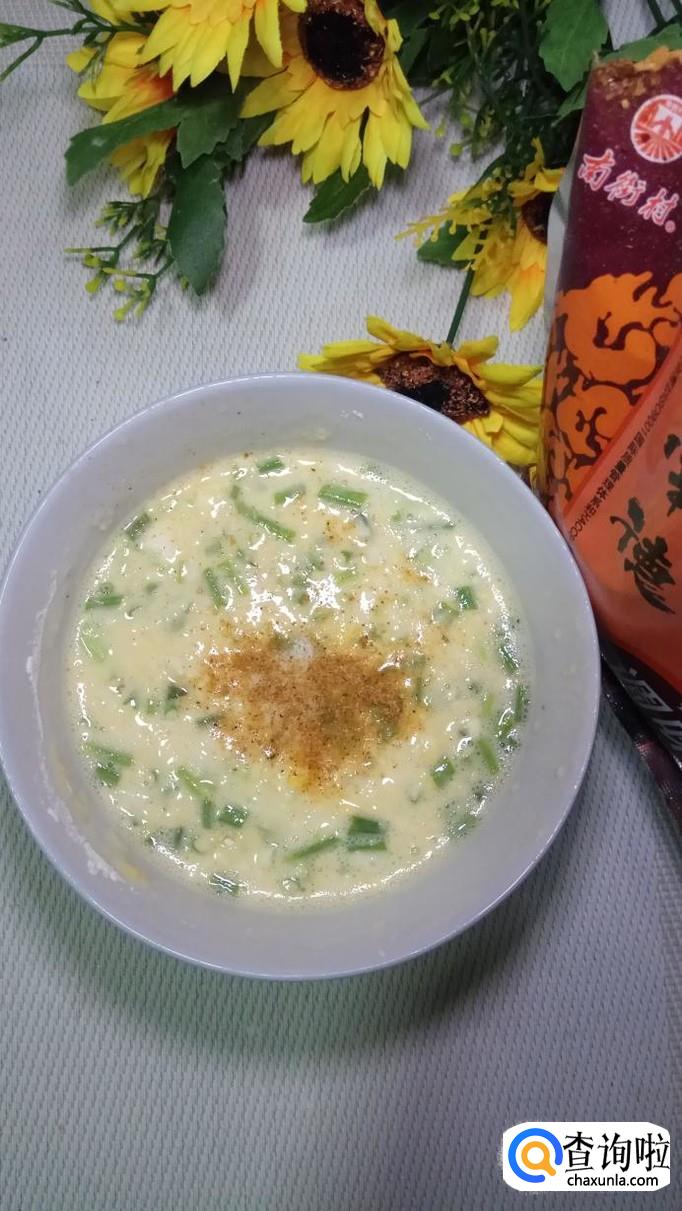 加入少量清水,搅拌成面糊状,然后再放适量盐,五香粉,可以根据自己的口味进行添加。