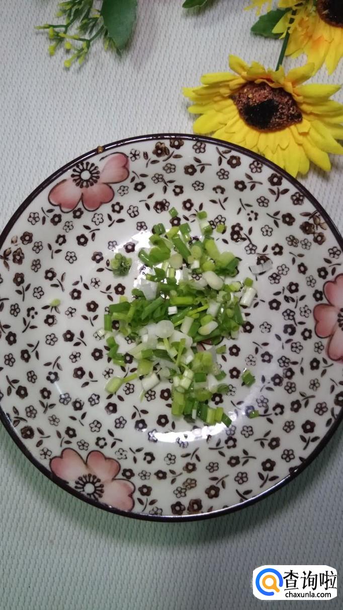 准备两根小葱洗净后,切成葱末,放入碗中,不仅好看而且营养。