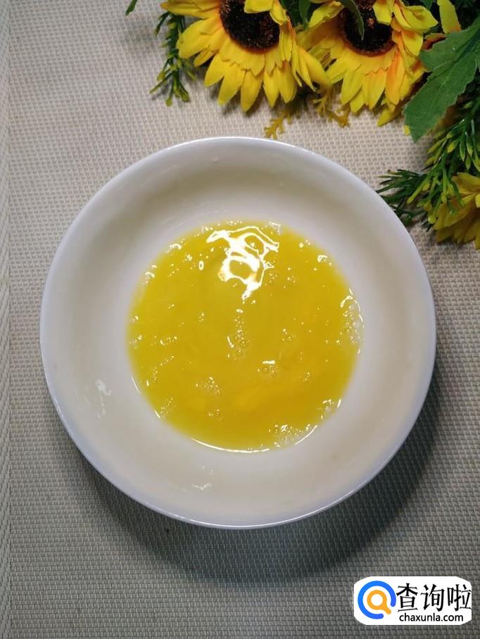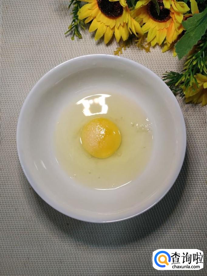 碗中打入一个鸡蛋,加少许食盐打散备用。