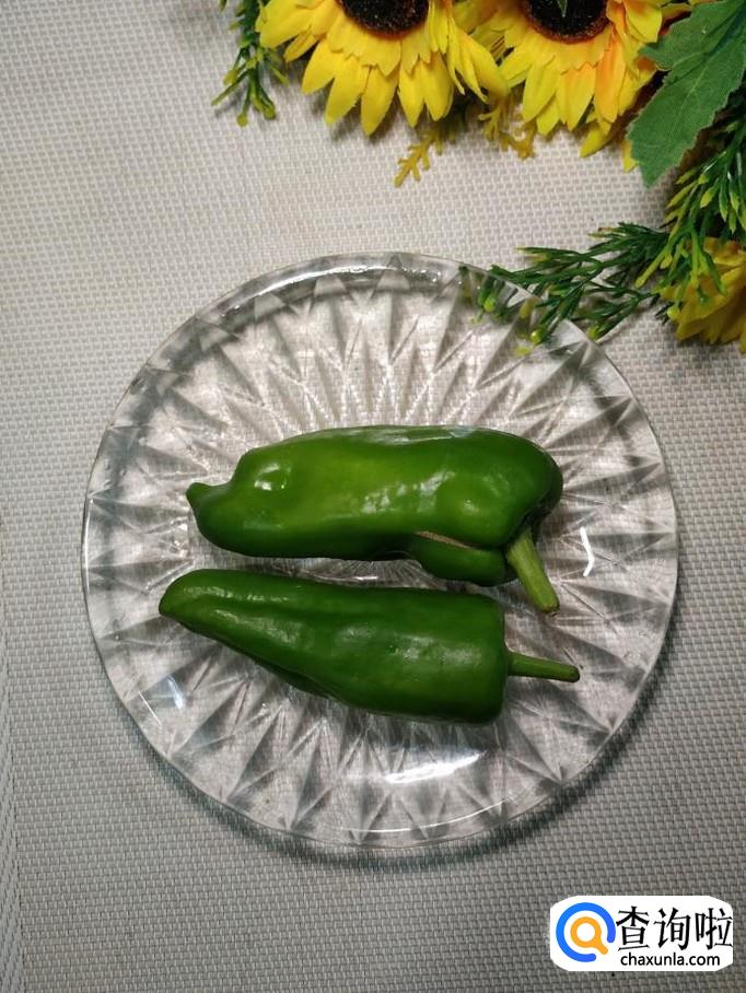 准备一个吃剩的花卷;再准备一根胡萝卜,适量青椒,洗净后放入盘中备用。