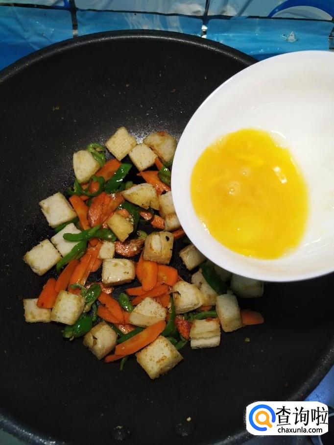 然后将之前炒好的馍块倒入锅中,翻炒均匀。