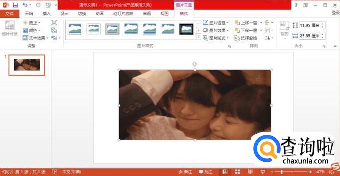 此时GIF动画已插入到幻灯片中,可以根据需要调节图片的位置和大小。插入成功后需预览试看动画效果。
