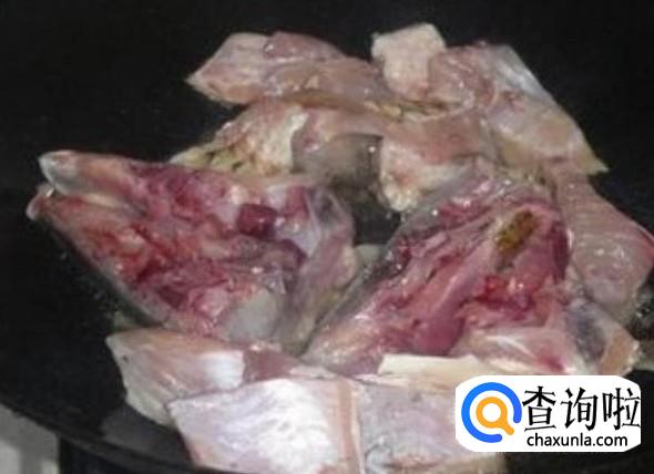 煎到焦黄色,然后放姜丝、蒜米进去翻炒一下。