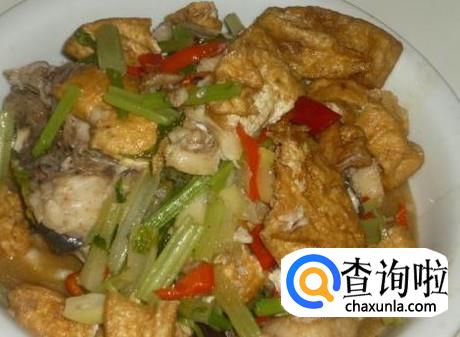 草鱼1条,炸豆腐150克,香芹、青蒜、姜片、彩椒适量,2勺生抽。