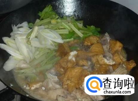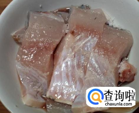 把鱼斩成一块块,加适量的盐腌制几分钟,炸豆腐切成两边,香芹、青蒜、姜丝蒜米准备好。
