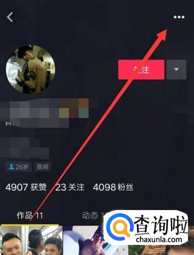 进入之后,找到需要举报的人的主页面,点击图示位置。