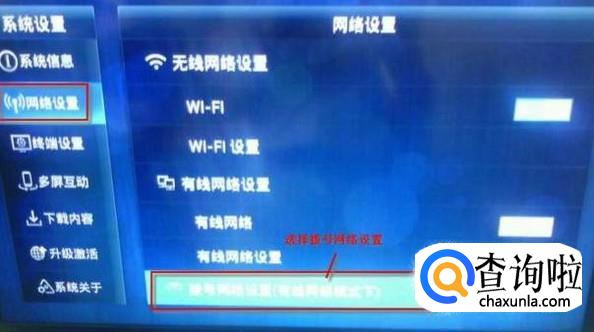 之后,我们进行网络设置,我们可以用WiFi连接机顶盒,不过这样的机顶盒需要内置无线功能,也可以用网线连,然后选择ppo的连接方式,连接成功之后就可以上网啦