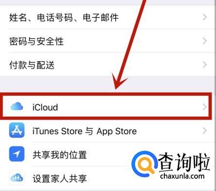 点击【iCloud】选项。