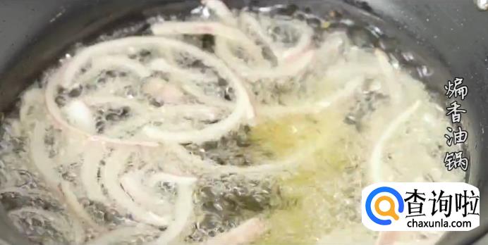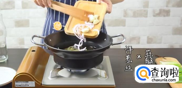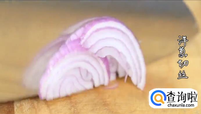 洋葱切丝,热锅起油,下洋葱和姜蒜爆香油锅。