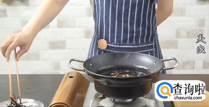 下葱段和虾米,炸出葱油后捞出材料,滤出葱油待用。