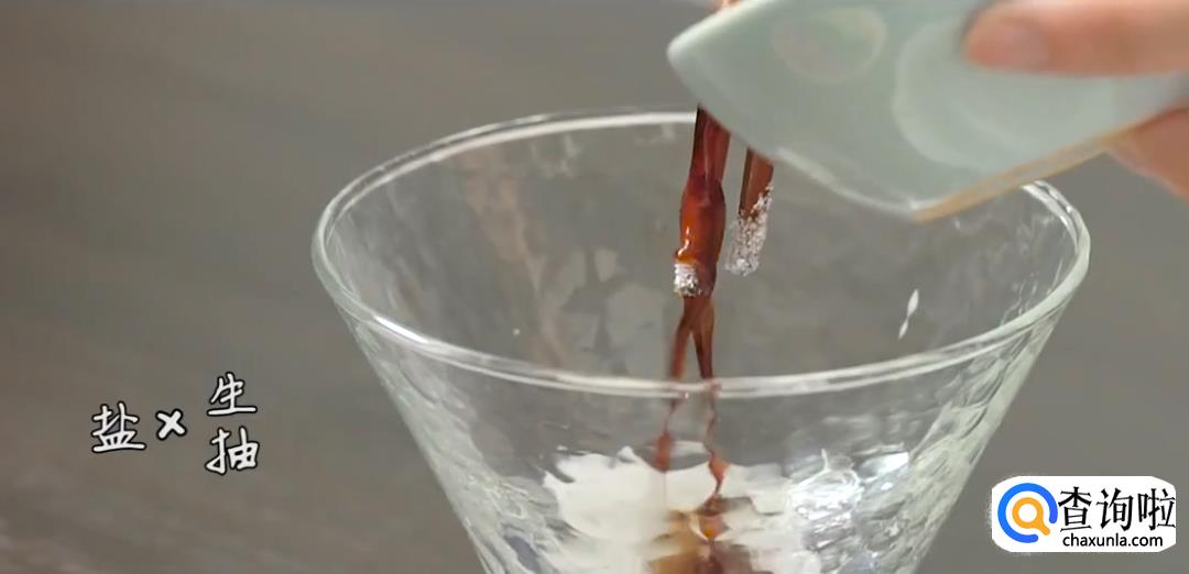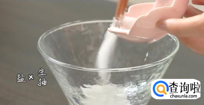 取碗装入盐巴,生抽,辣油,醋。