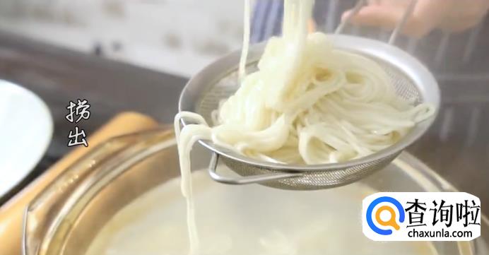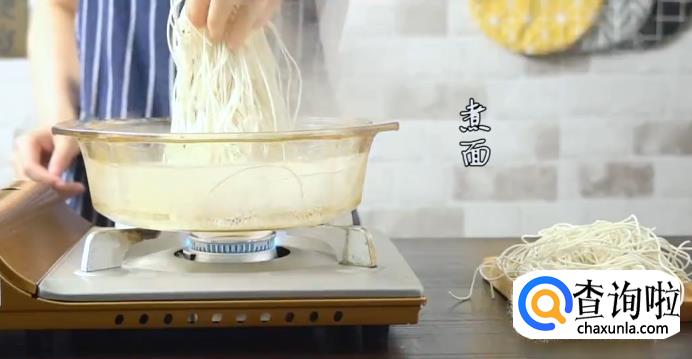沸水煮面,将面捞出后放入碗中。