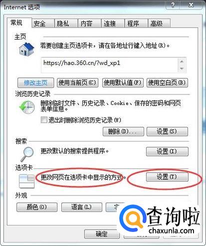 在常规选项卡中点击更换默认的搜索提供程序旁边的【设置】,如下图所示: