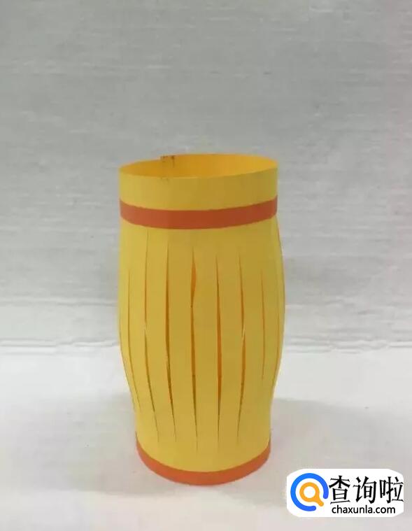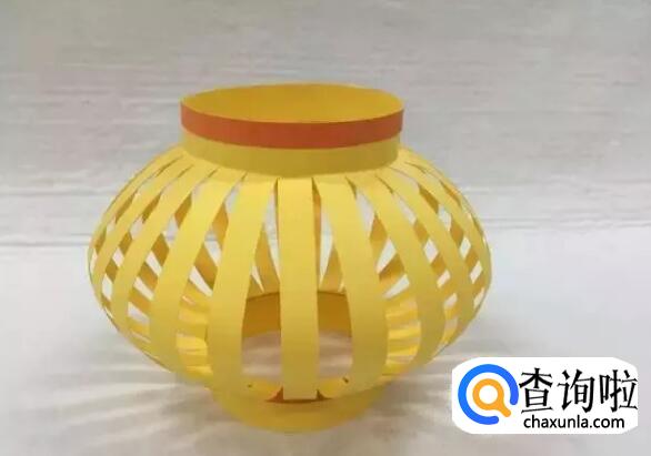 用手把圆筒轻轻往下压,压出灯笼形状,并固定好。