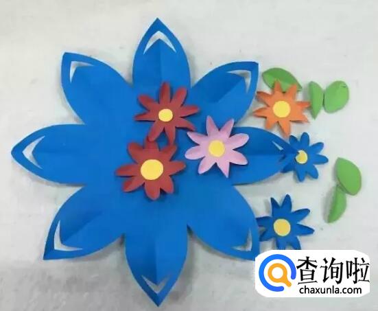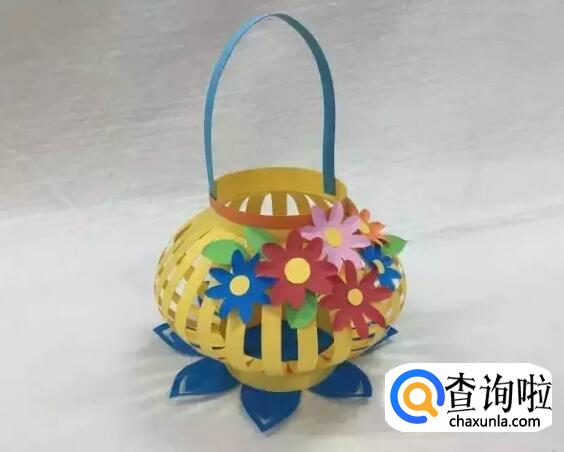 用彩纸剪出一些好看的花朵、叶子,把它们粘在灯笼上。