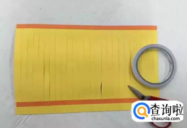 用橙色纸条装饰上下两端,作为灯笼的口部和底部。