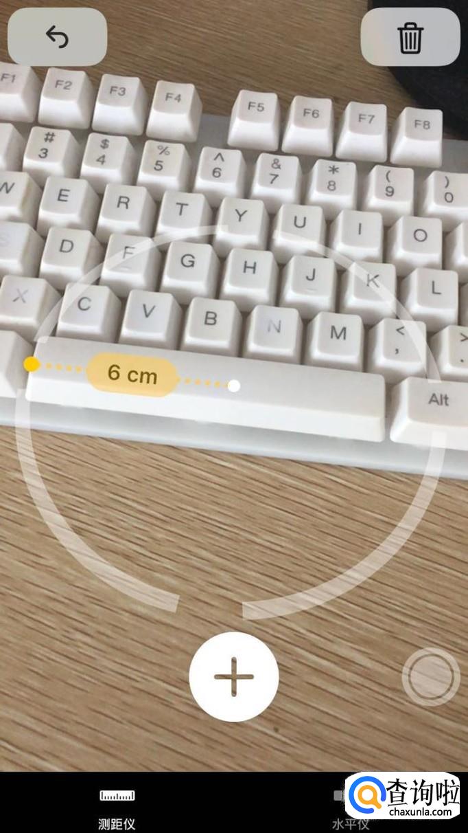 当小圆点移动到要测量的物体的终点时,再次点击+表示添加了终点的点。