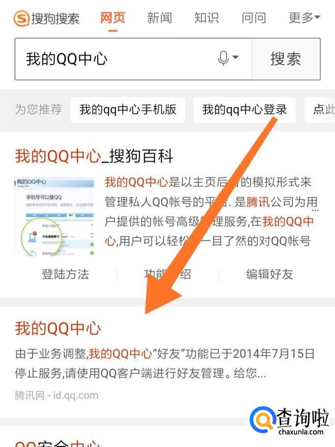 首先使用搜狗搜索“我的QQ中心”,根据网站提示,进入“我的QQ中心”的官网。