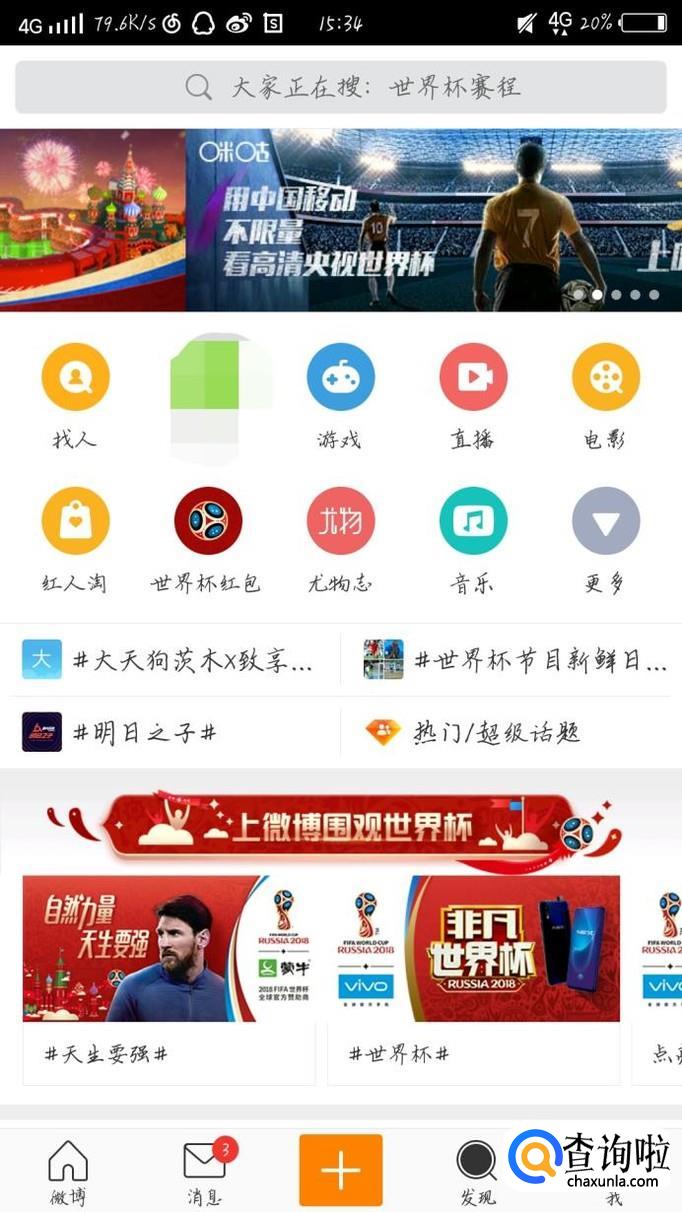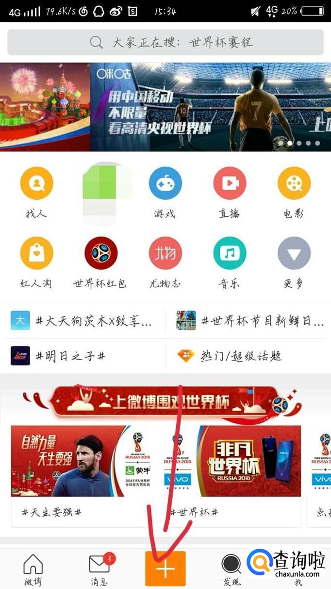 首先打开微博这个app,如图1所示。进入微博会看到一个新的界面,如图2所示啊。