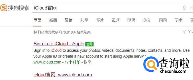 如下图所示,在搜狗浏览器中输入ICloud官网