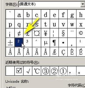 那么,在下面的字符中就看到上标2,鼠标点击2,再点插入;完成平方米的输入。
