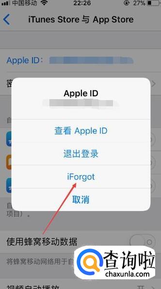 此时会弹出【Apple ID】对话框,接着点击此对话框中的iForgot按键即可。